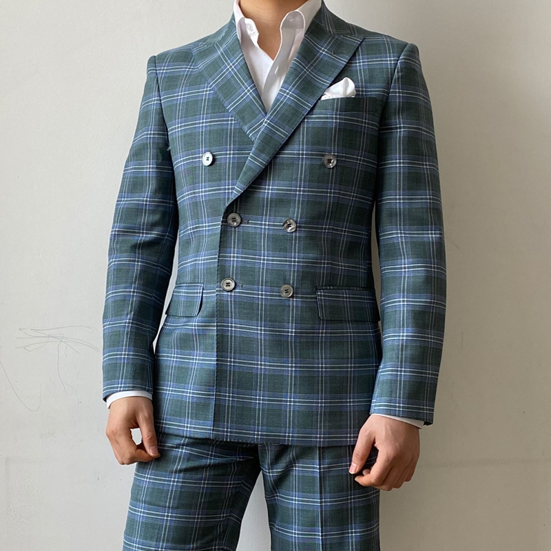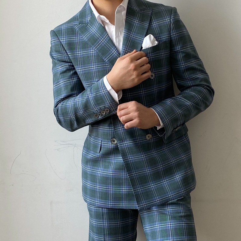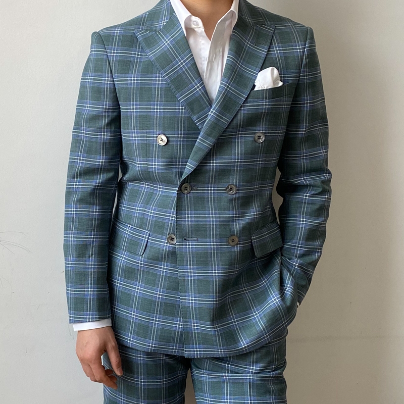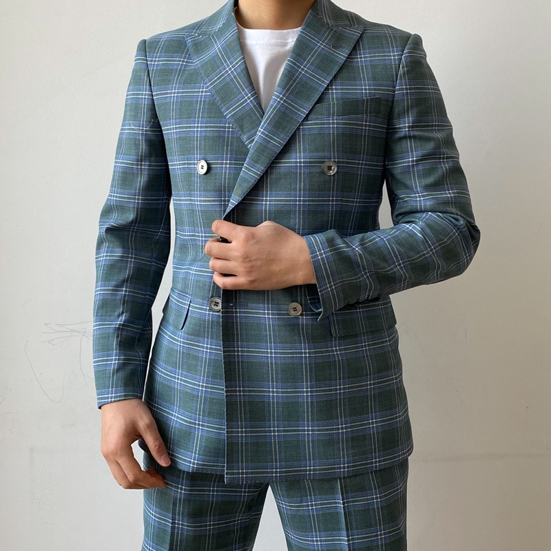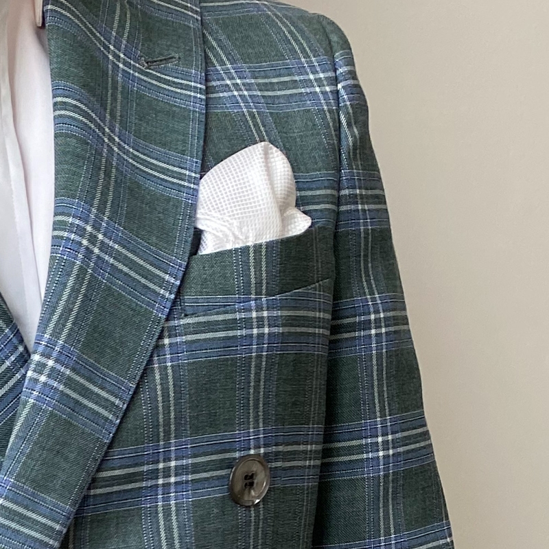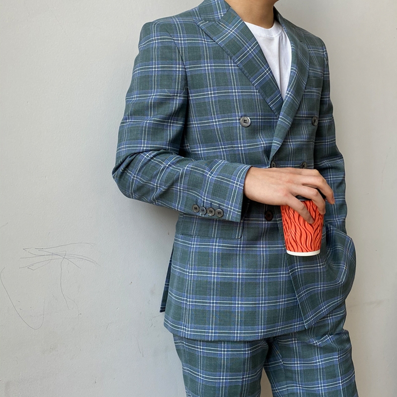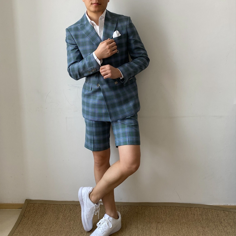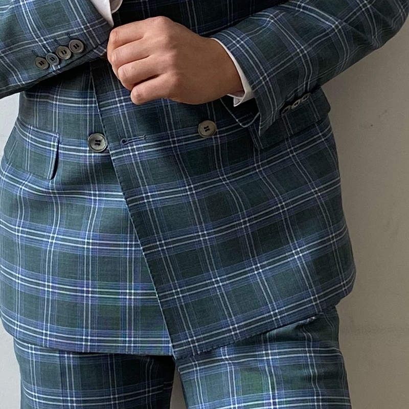 KIESSU Green Plaid Linen Suit Set